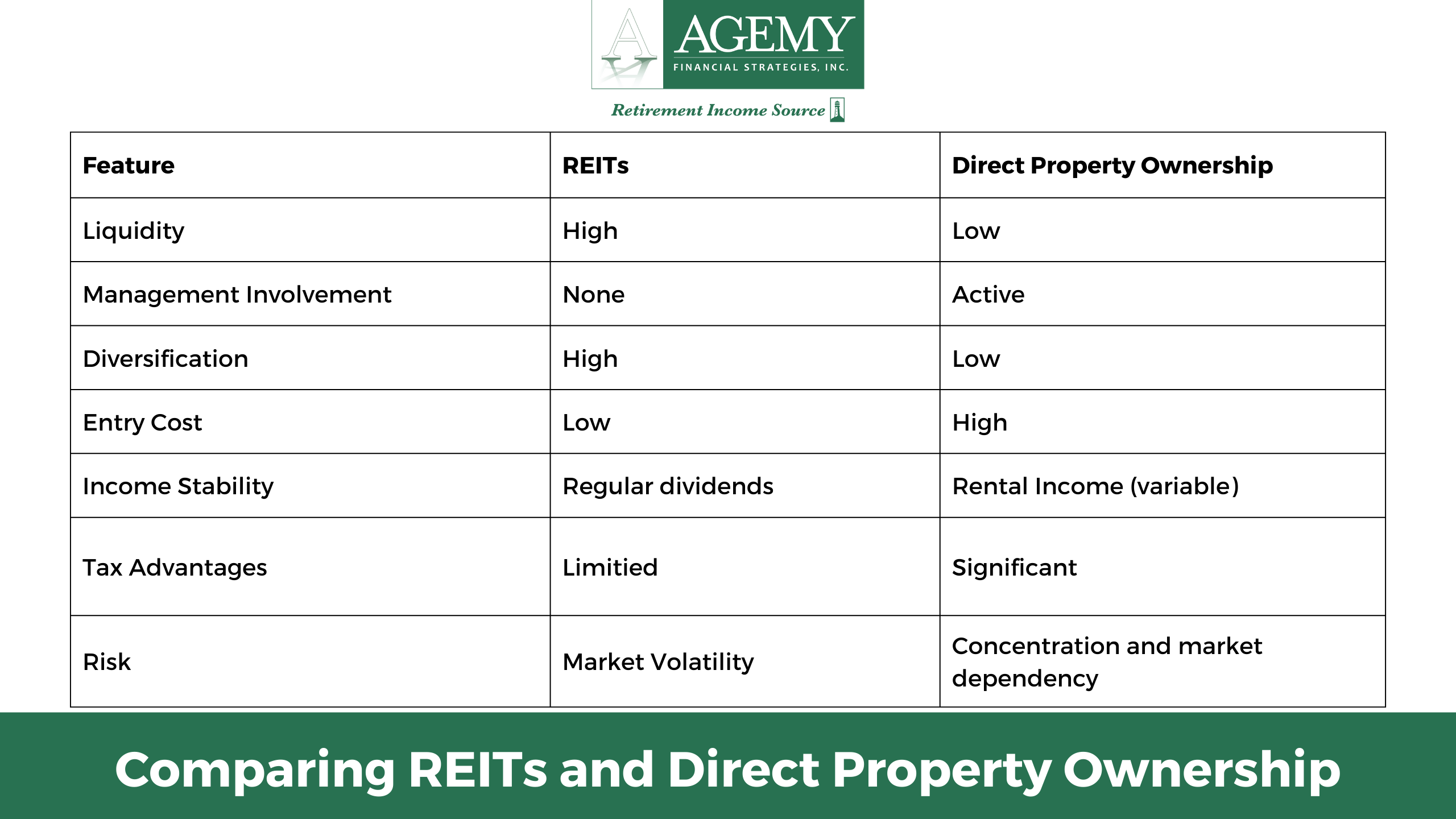 By working with Agemy Financial Strategies, you gain a partner who understands both the potential and the pitfalls of real estate investing—and knows how to navigate them with your retirement goals in mind.