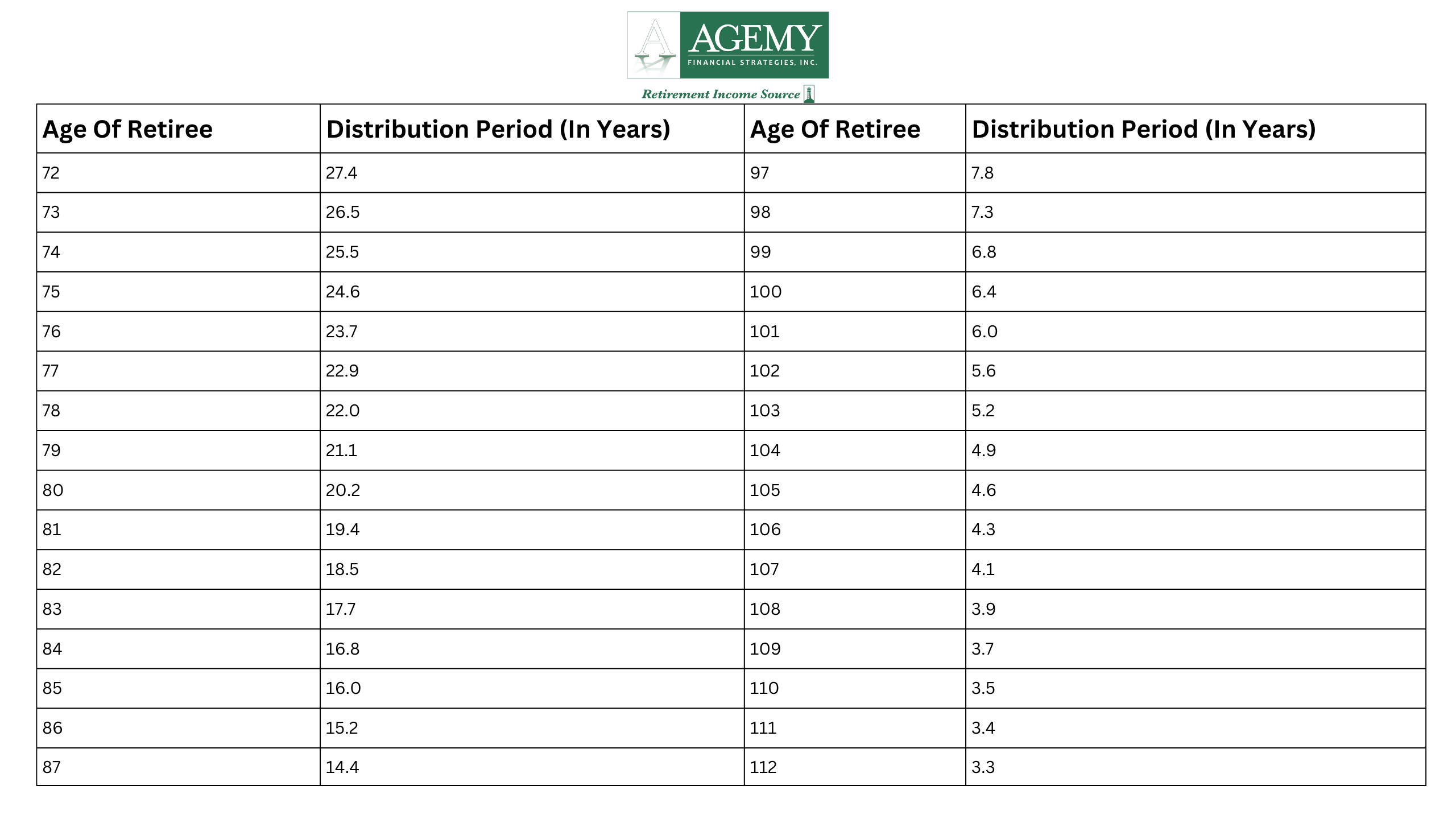 Disclaimer: The information provided in this blog is for educational purposes only and is not intended as specific financial or investment advice. Each individual’s financial situation is unique, and any changes to your retirement income strategy or RMD planning should be discussed with a qualified financial advisor. We recommend consulting with our team at Agemy Financial Strategies to ensure your decisions align with your financial goals, risk tolerance, and the latest IRS regulations.